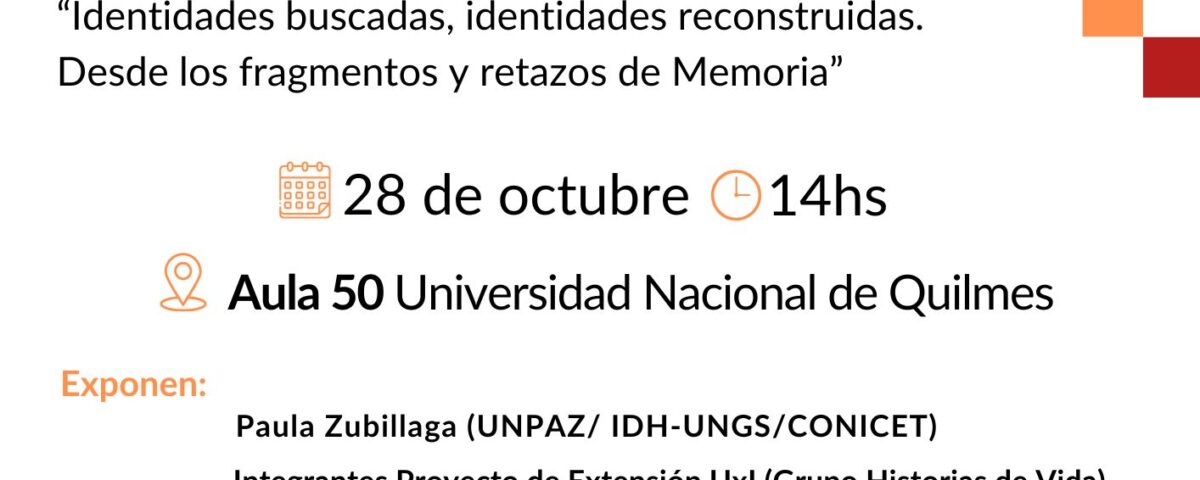 Este 28 de octubre de 2025, mes dedicado especialmente al Derecho a la Identidad en todo el país, tendrá lugar en la Universidad Nacional de Quilmes el conversatorio “Identidades buscadas, identidades reconstruidas. Desde los fragmentos y retazos de Memoria”. Actividad que cuenta con la participación especial de la Universidad Nacional de José C. Paz (UNPAZ).