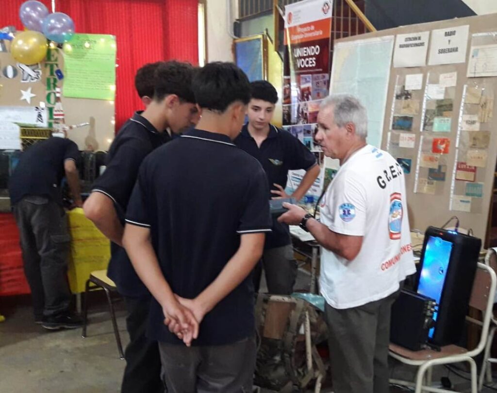 Al día siguiente, en el exhibidor de radio se compartió espacio con los integrantes del Radio Club Quilmes Alejandro Lourido, Claudia Di Stefano y Néstor Limardo quienes instalaron antenas y equipos de radio para demostraciones, y explicaron al público aspectos de la actividad de radioaficionados. En la 33° Exposición Anual de Proyectos 2025, se presentaron decenas de proyectos y muestras tecnológicas en la áreas temáticas de aeronáutica y aviónica, desarrollados por docentes y alumnos de esa comunidad educativa, que atrajeron la visita de miles de personas que recorrieron los cientos de metros de talleres y hangares que tiene el colegio. Es la primera vez que participa un integrante del proyecto Uniendo Voces, y las autoridades y profesores de la escuela desean mantener esa participación por la gran expectativa despertada.
