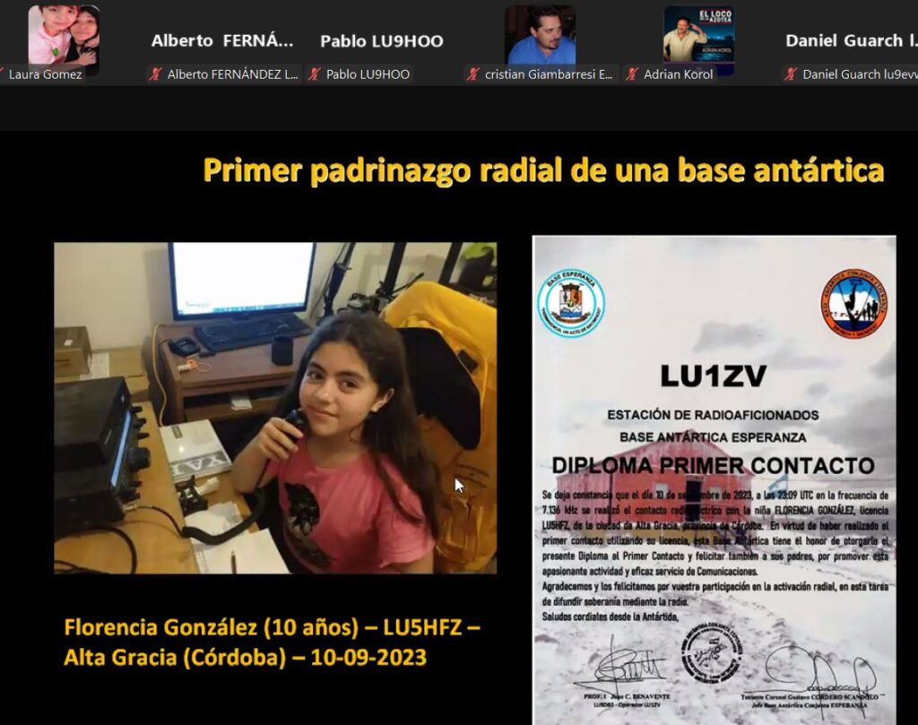 Entre los asistentes del Radio Club Alta Gracia, participaron su presidente, Pablo González, padre además de la niña Florencia, que en 2023, entonces con diez años de edad, efectuó su primer contacto de radio con la Base Antártica Esperanza. Este suceso, según es tradición en el Servicio de Radioaficionados, marcó un hito histórico porque por primera vez, una base antártica alcanzó el padrinazgo de una niña radioaficionada, durante una activación radial en el marco de articulación con el proyecto Uniendo Voces.