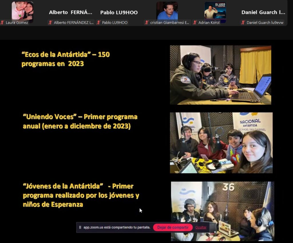 Vale recordar que Uniendo Voces es el primer proyecto de Extensión Universitaria del país en alcanzar el rango de bicontinental, por registrar actividades radiales en el Sector Antártico Argentino. “Encender un equipo de radio es una forma de izar una bandera en el espectro radioeléctrico” fue la idea cierre de la presentación.